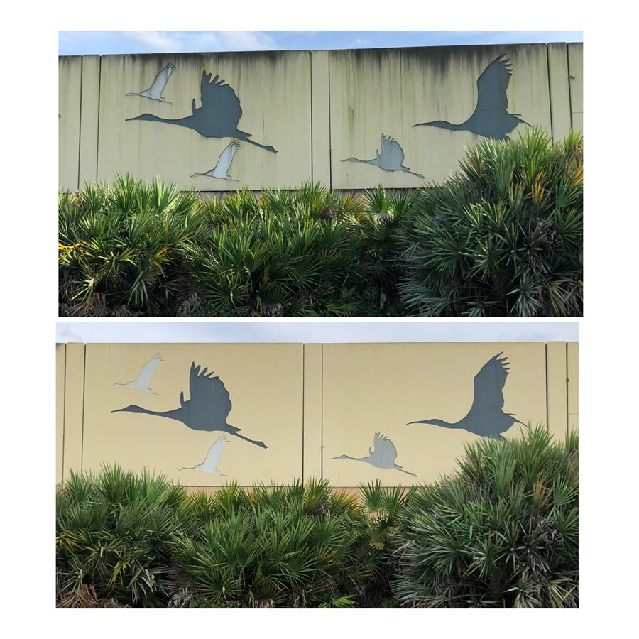 Keeping our Florida Turnpike Beautiful! We used our Soft Washing technique in order to deep clean the exterior walls of the Florida Turnpike without doing any damage to the surface. Have a look at the before and after photo and you can see the big difference that our soft washing achieves!